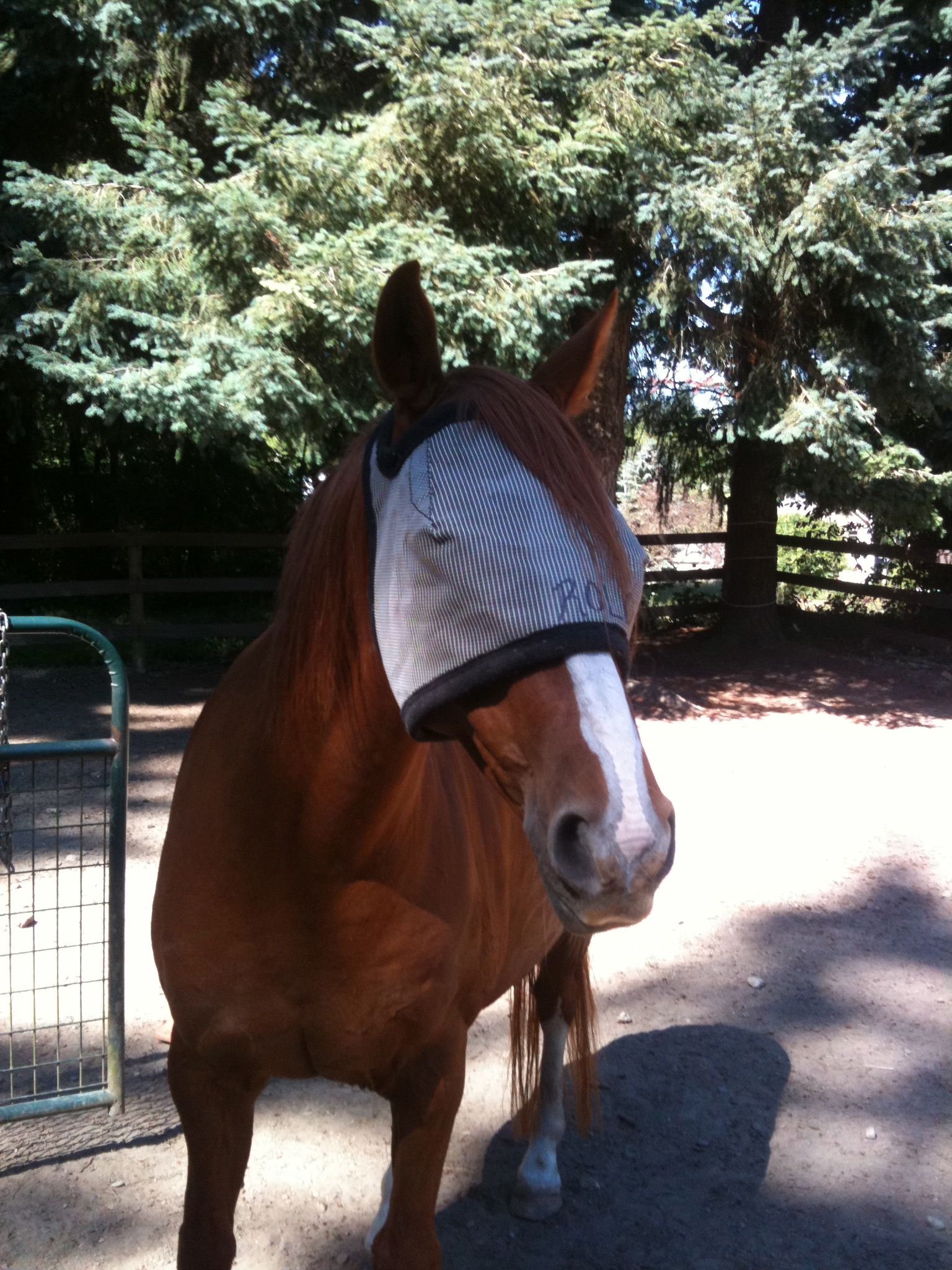 My hat wasn’t always my hat. It says ROLO on it and not HONEYCUTT. Rolo had a very big head, so his hat doesn’t fit me very well. I need an Arab or Cob sized hat. But I am a very lucky horse to have a hat at all, so I just sigh and don’t say anything to mom about my hat being too big. She is very busy getting ready for the Horse Show, so I am trying to be extra nice to her. I don’t have to try very hard, because I am naturally pretty nice.