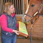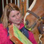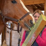 My good friend is a very famous artist named Maeve Harris and she came out to visit me this weekend so that we could do a thing called Collaboration, do you know that thing? Collaboration is when more than one horse or people works together to make a thing that normally could be done by just one of them, but because there are two of them working on it, it becomes something different and more special. Maeve Harris and I are both famous painters, so we decided to do Collaboration and make a picture to trade for dollars at Heart of the Horse! Mom took these pictures of Collaboration happening so you can see me and Maeve Harris working together and having so much fun making our picture.